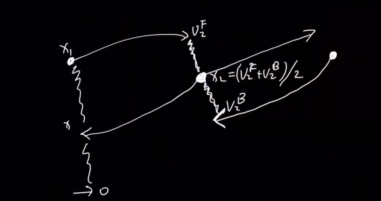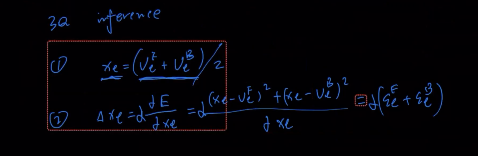 在bi -PCN当中,我们可以看到已经有4项w了。我们尝试去掉原本更新\(\Delta x\)时需要的后面的神经元的信息,而是使用刚才双向得到的后传入的信息.如图: