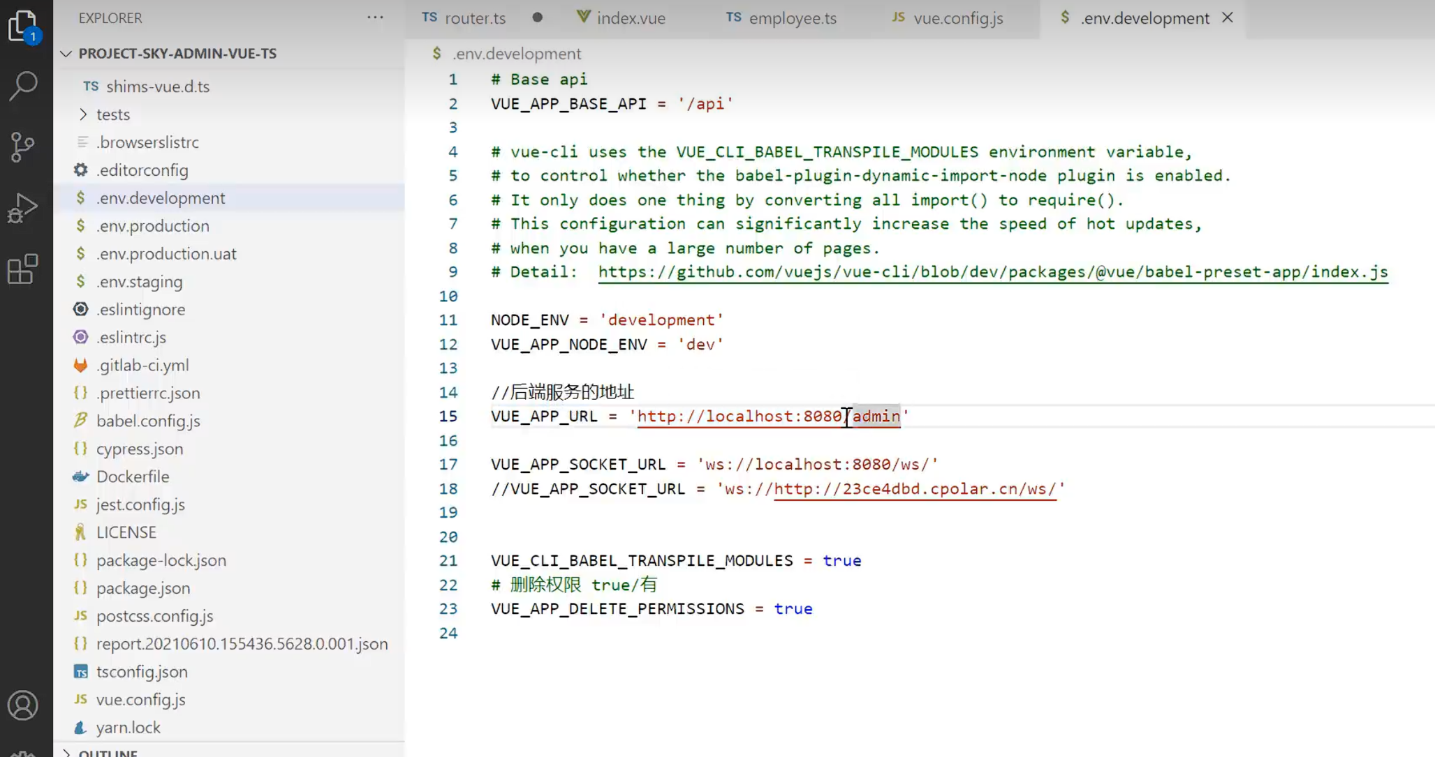 要开发前端代码,首先需要找到对应的组件。从路由文件 router.ts 中找到员工管理页面(组件)。
