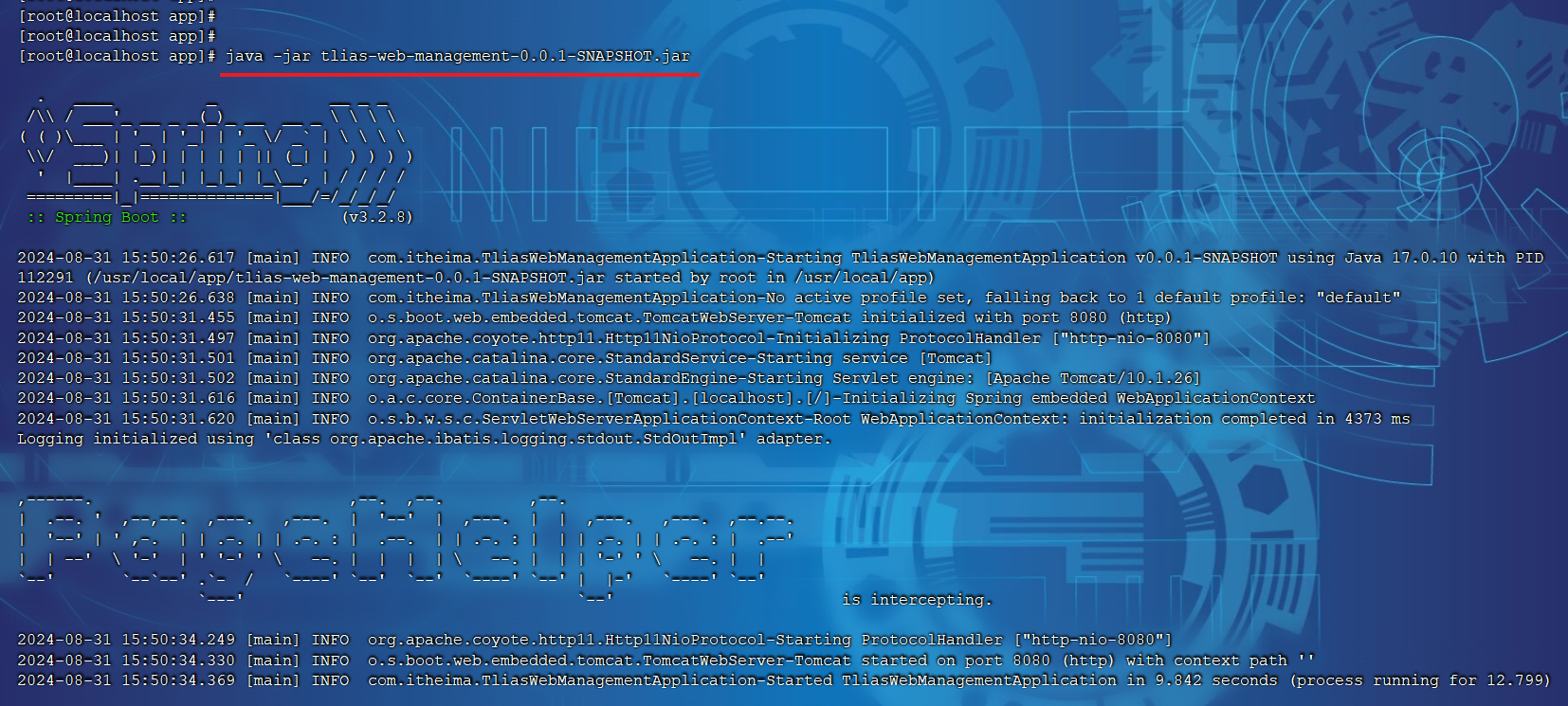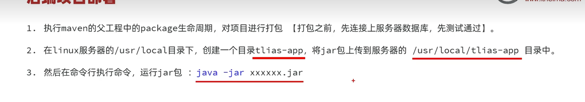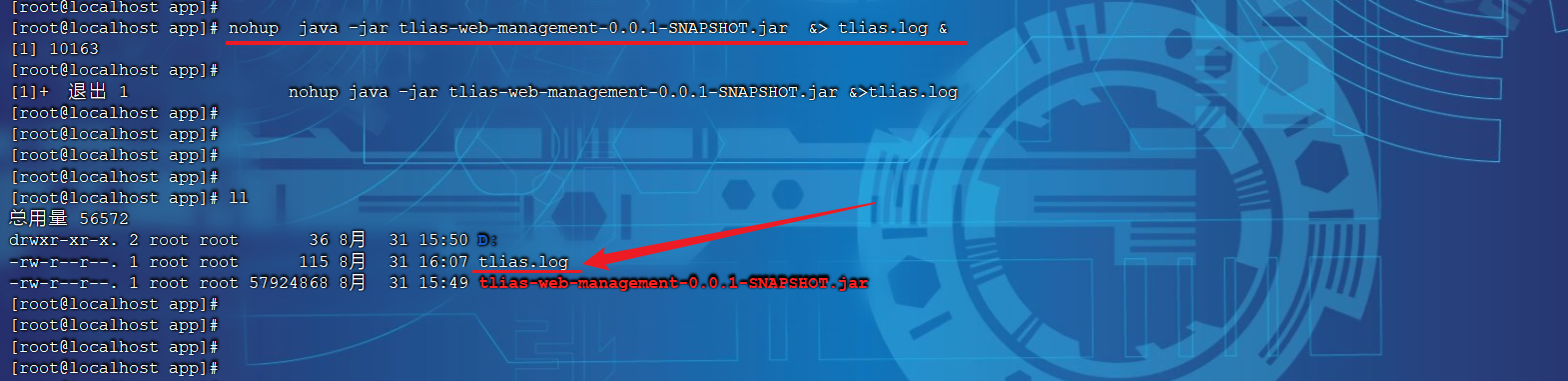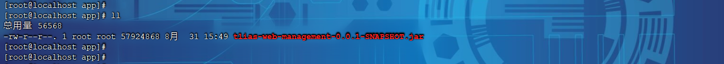 _#进入目录/usr/local/app _ cd /usr/local/app #运行jar包 java -jar tlias-web-management-0.0.1-SNAPSHOT.jar