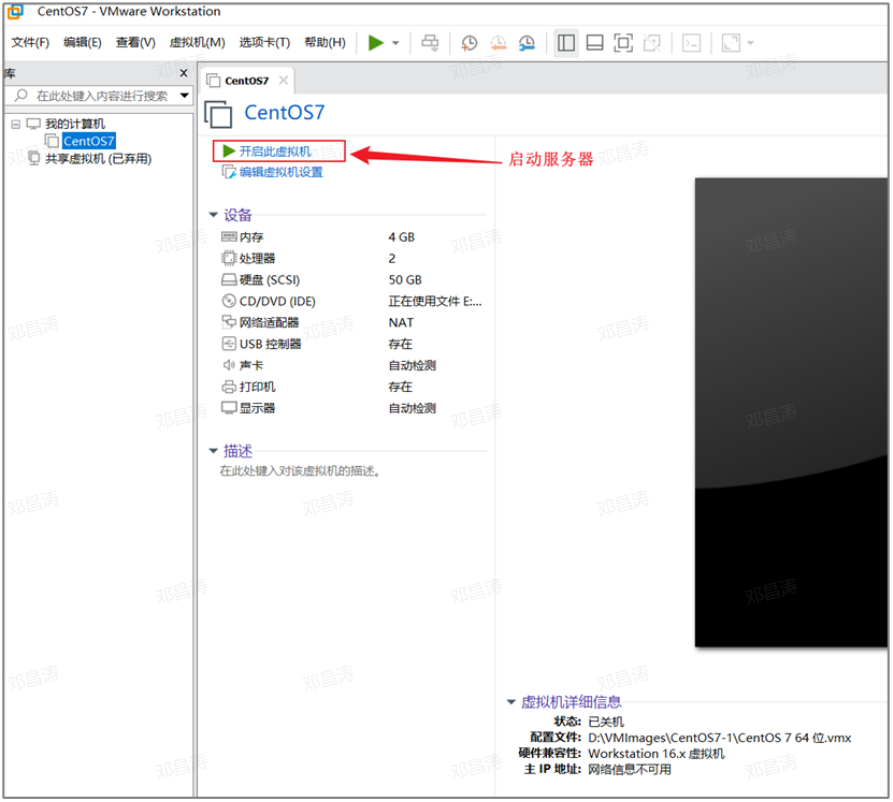4). 挂载完毕之后,启动 Linux 服务器。