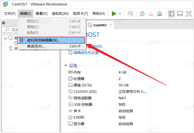 1). 打开 Vmware 虚拟机,打开 编辑 -> 虚拟网络编辑器(N)...