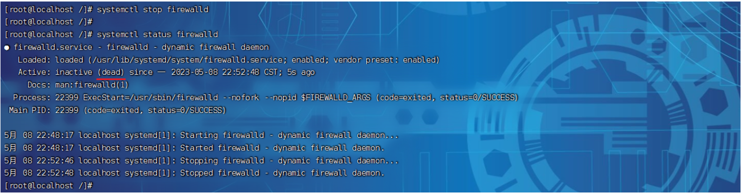 systemctl stop firewalld