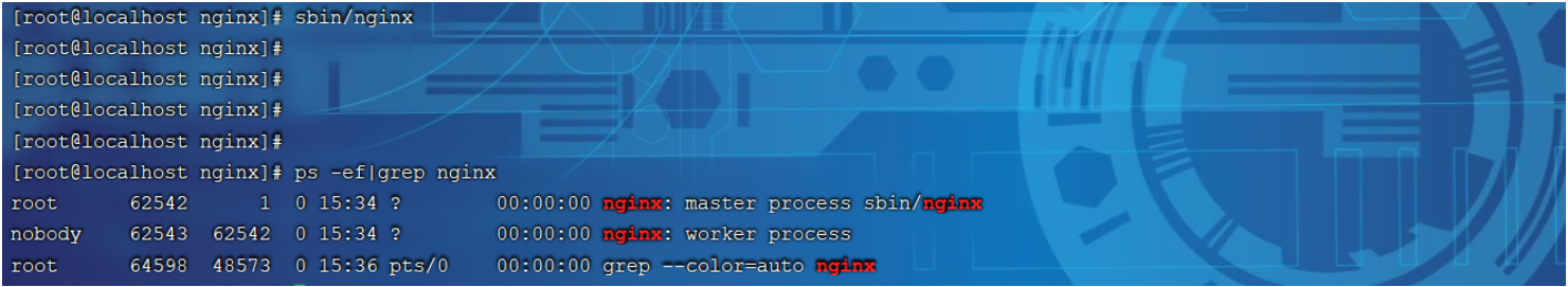 ps指令查询当前系统中的 nginx 进程,从而确认 nginx 是否启动 。
