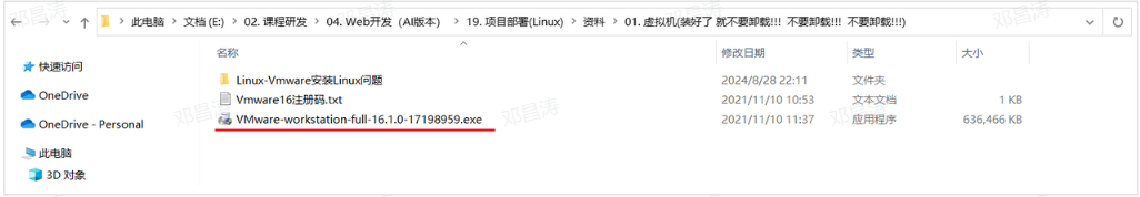 在我们的课程资料中提供了 VMware 的安装程序。找到课程资料中的 Vmware 的安装包(exe 文件),然后双击下一步下一步的安装即可。