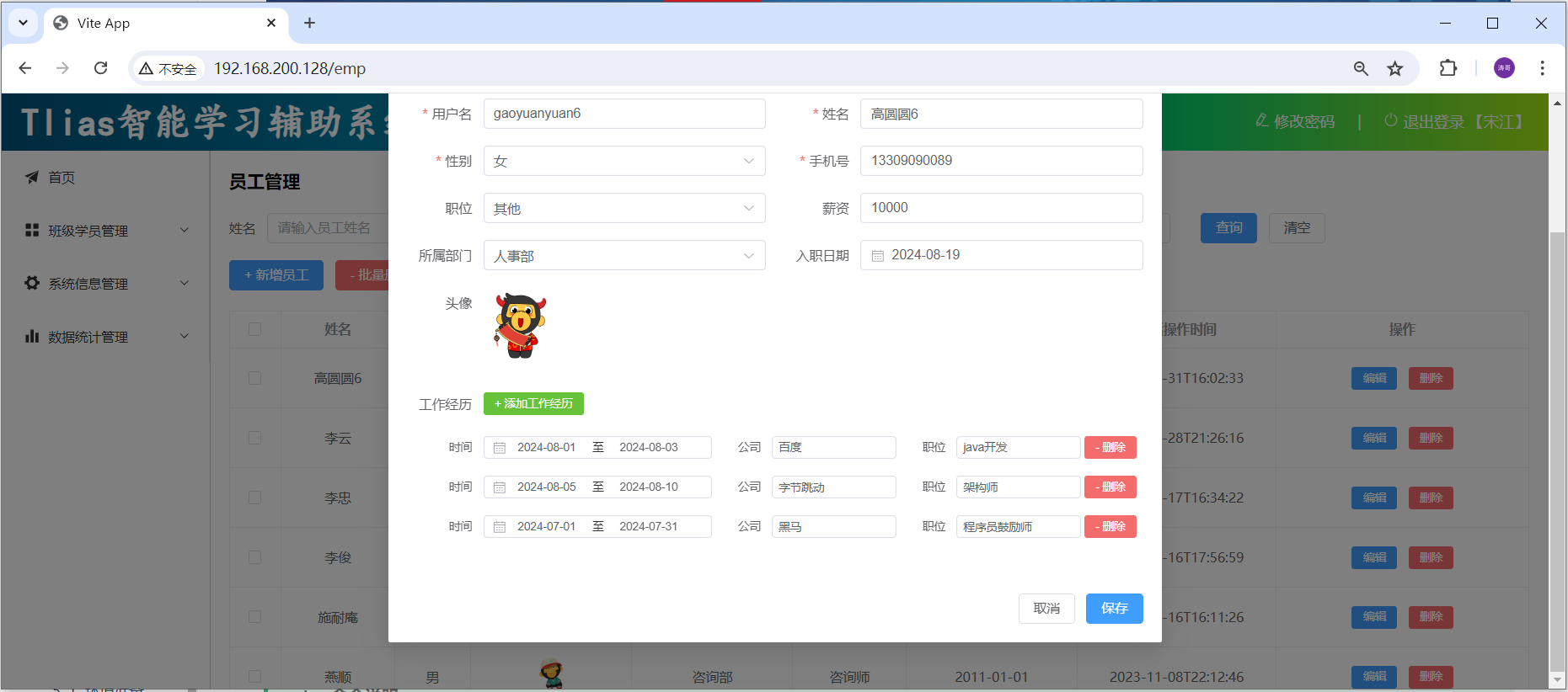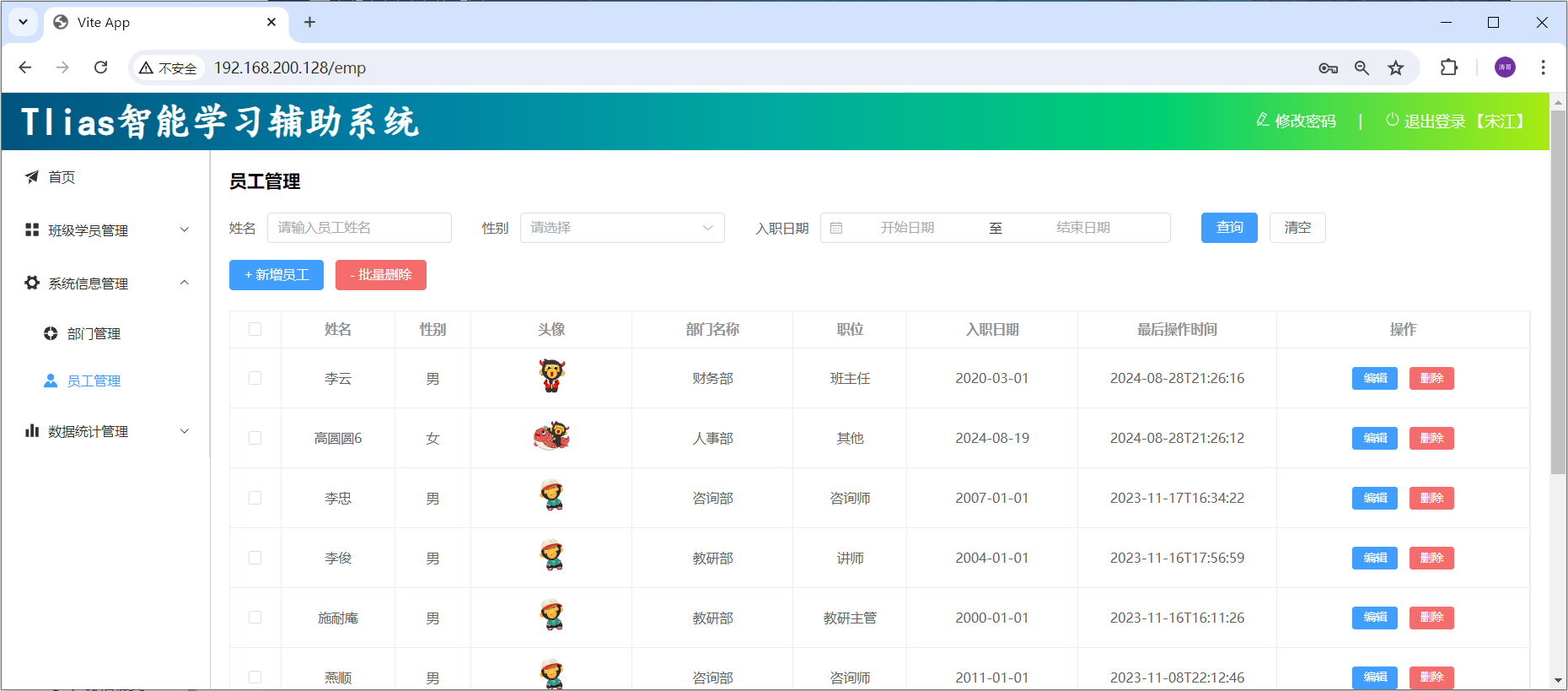 _#配置数据库连接信息_ spring: datasource: driver-class-name: com.mysql.cj.jdbc.Driver url: jdbc:mysql://192.168.100.128:3306/tlias username: root password: 1234 servlet: multipart: max-file-size: 10MB _#单个文件最大大小限制10MB_ _ _max-request-size: 100MB _#单个请求最大大小限制100MB_ _#配置mybatis的日志输出到控制台_ mybatis: configuration: log-impl: org.apache.ibatis.logging.stdout.StdOutImpl _#配置mybatis的驼峰命名的映射开关_ _ _map-underscore-to-camel-case: true _#查看事务管理的日志_ logging: level: org.springframework.jdbc.support.JdbcTransactionManager: debug _#阿里云oss配置_ aliyun: oss: endpoint: https://oss-cn-beijing.aliyuncs.com bucketName: java422-web-ai改造完毕之后,可以在本地的 idea 中先启动当前项目,然后访问一下,看看工程是否正常访问。