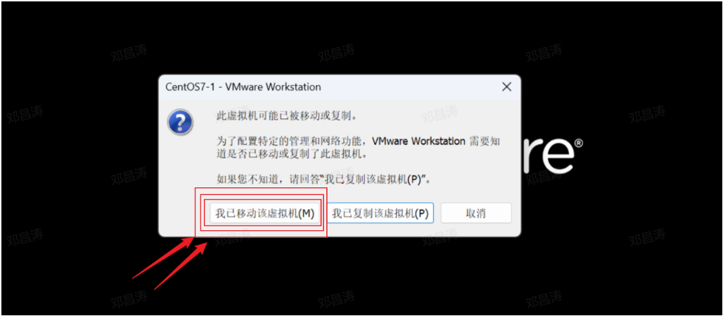 启动过程中,如果出现如下界面,选择 我已移动该虚拟机。