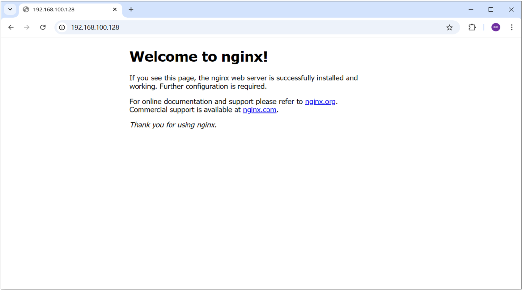 然后,我们就可以打开浏览器,访问服务器上的 nginx 。