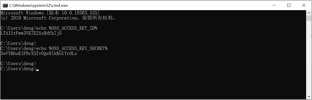 echo %OSS_ACCESS_KEY_ID% echo %OSS_ACCESS_KEY_SECRET%