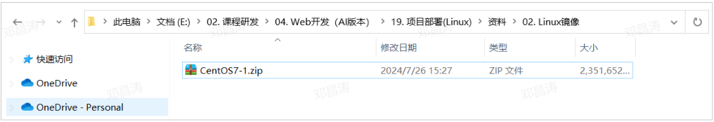 2). 解压 资料/Linux 镜像/CentOS7-1.zip 到一个比较大的磁盘中 (没有中文的目录)。