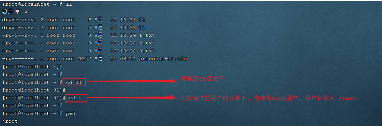 - 作用: 用于切换当前工作目录,即进入指定目录